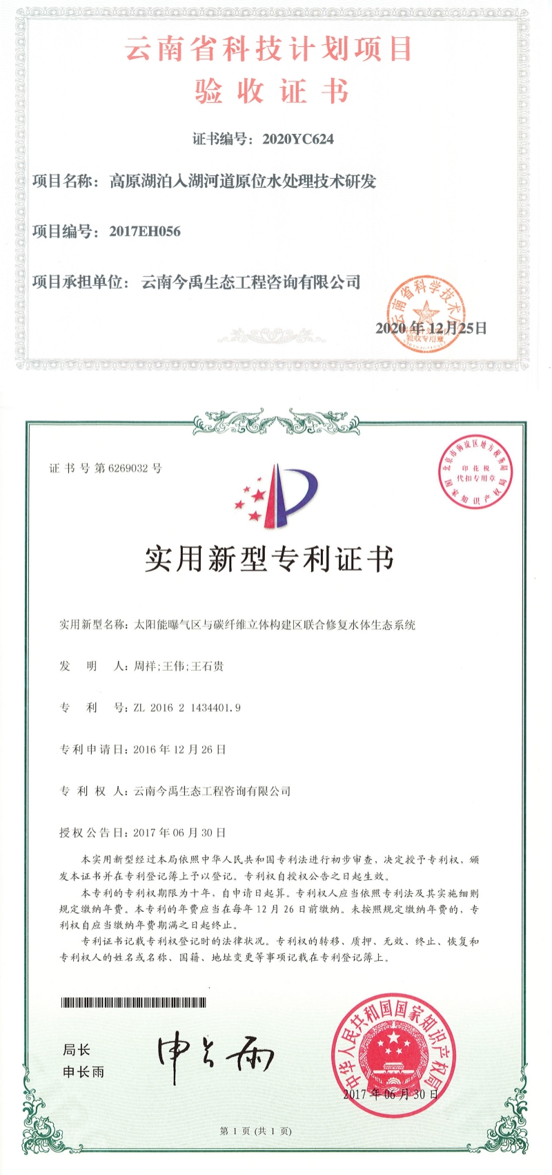 公司先后認(rèn)定為“高新技術(shù)企業(yè)”、“國家科技型中小企業(yè)”、“云南省科技型中小企業(yè)”、“云南省創(chuàng)新型中小企業(yè)”、“云南省專精特新中小企業(yè)”、“昆明市科技創(chuàng)新型試點(diǎn)企業(yè)”、“昆明市重點(diǎn)科技服務(wù)機(jī)構(gòu)”和“昆明市企業(yè)技術(shù)中心”,通過ISO9001質(zhì)量管理體系認(rèn)證,是云南省環(huán)保產(chǎn)業(yè)協(xié)會(huì)理事單位,“云南省水土保持學(xué)會(huì)生態(tài)修復(fù)和城市水土保持生態(tài)建設(shè)專委會(huì)”掛靠單位。